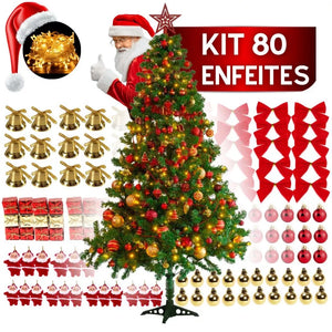 Árvore de Natal 150cm 300 Galhos - Kit Completo (80 Enfeites)